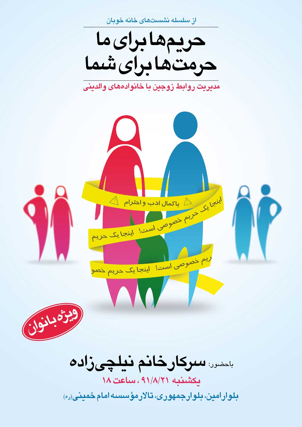 عنوان جلسه: مديريت روابط زوجين با خانوادههاي والديني (حريمها براي ما حرمتها براي شما)