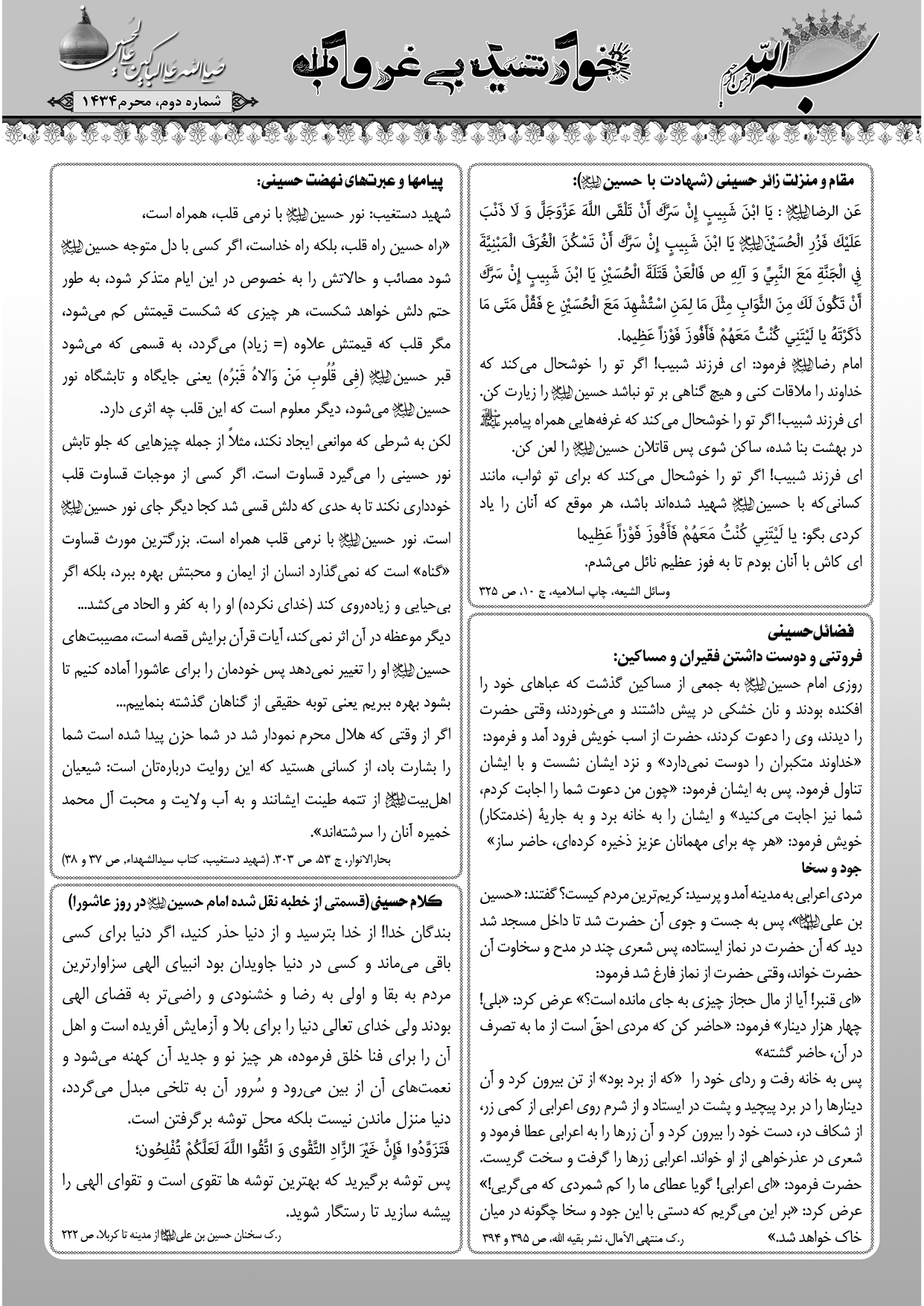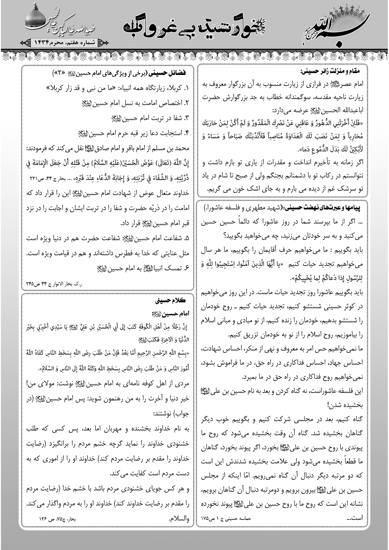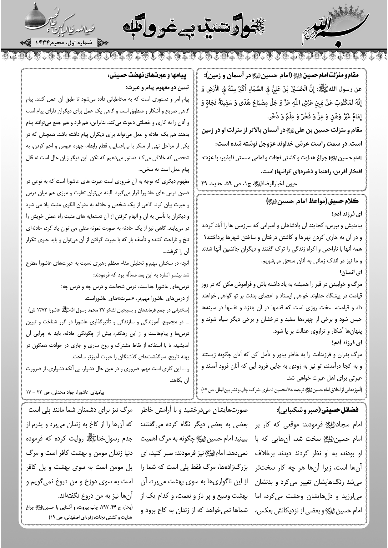 به همت مديريت فرهنگي تک نگارههاي "خورشيد بي غروب" ويژه ماه مبارک محرم الحرام سال 1434 هجري قمري منتشر شد.