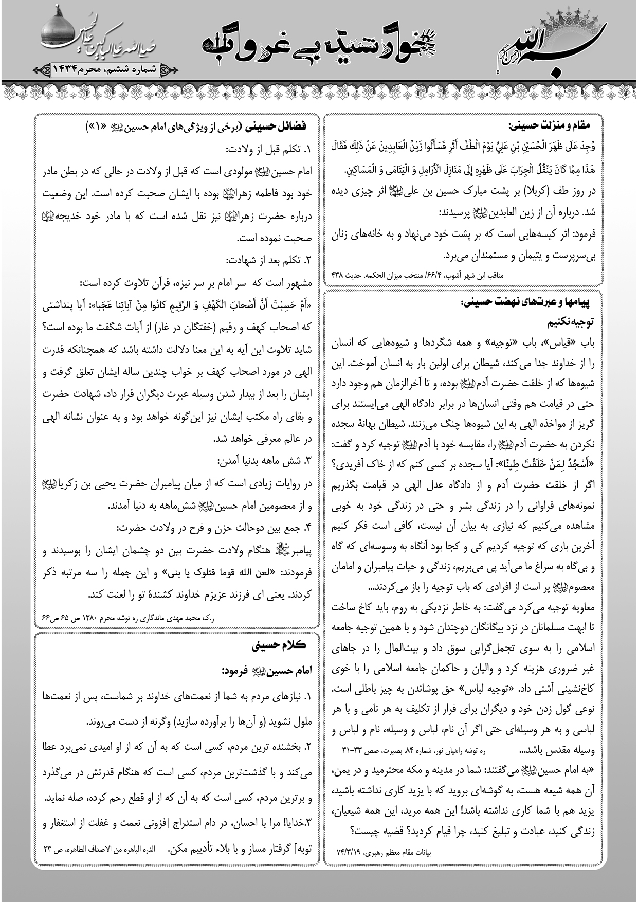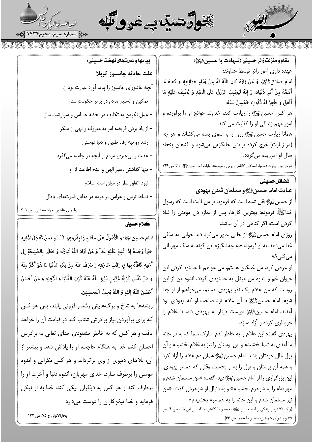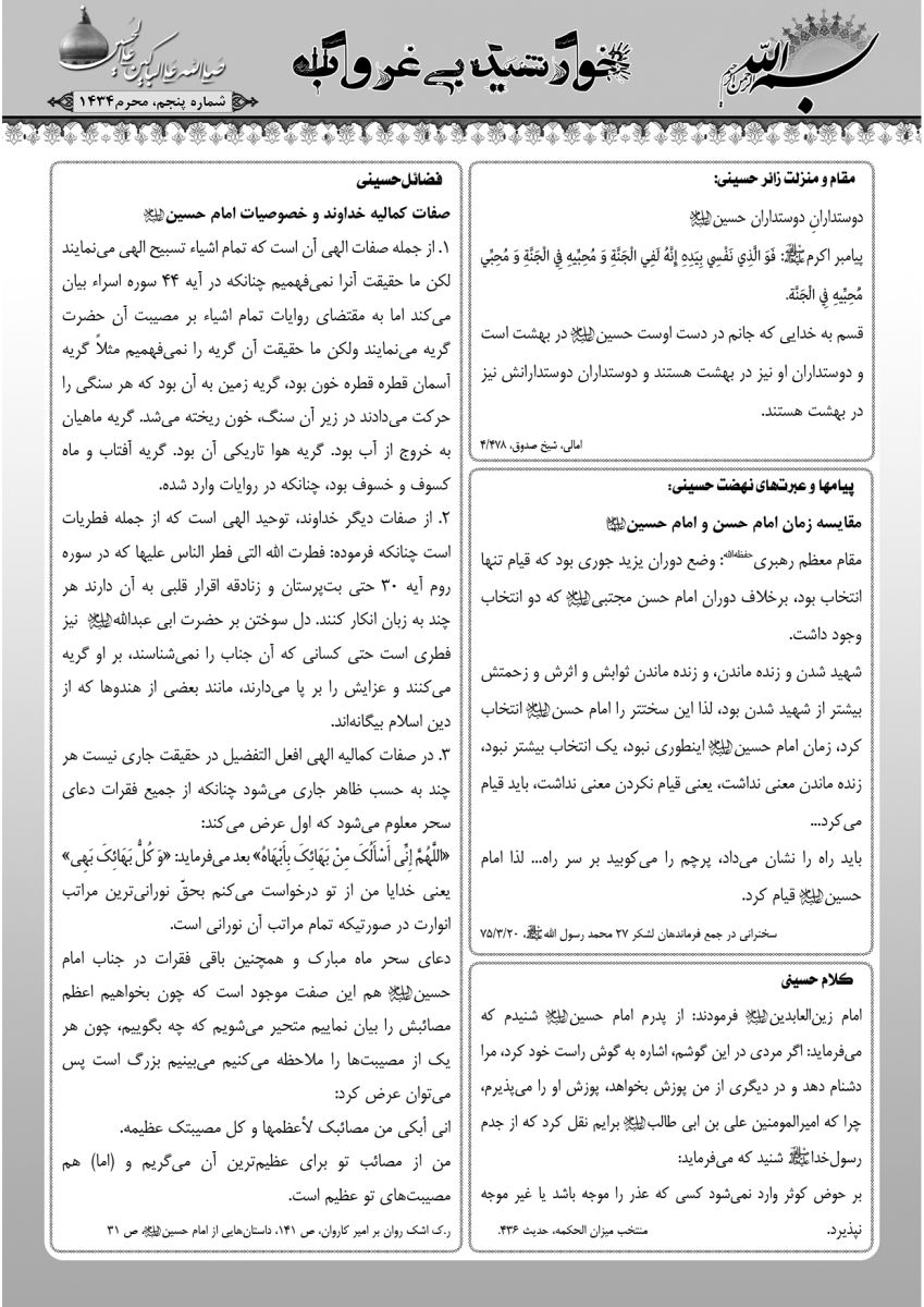 به همت مديريت فرهنگي تک نگارههاي "خورشيد بي غروب" ويژه ماه مبارک محرم الحرام سال 1434 هجري قمري منتشر شد.