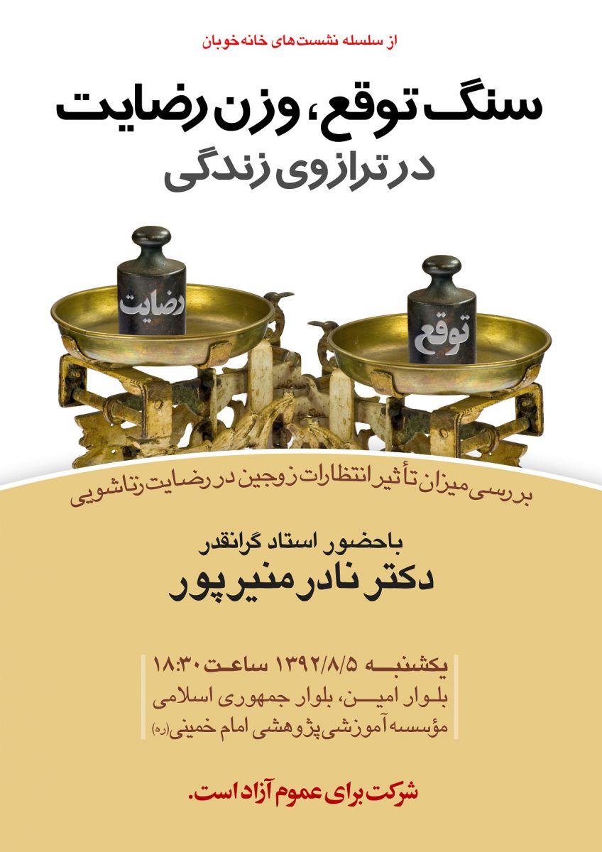عنوان جلسه: "بررسی میزان تاثیر انتظارات زوجین در رضایت زناشویی"