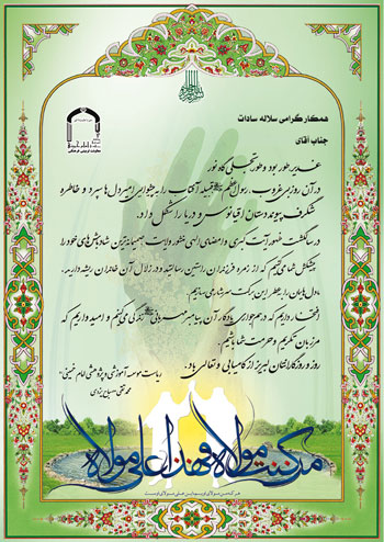 در سالگشت ظهور آيت كبري و امضاي الهي منشور ولايت، صميمانهترين شادباشهاي خود را پيشكش شما ميكنيم كه از زمره فرزندان راستين رسالتيد و در زلال آن خاندان ريشه داريد.