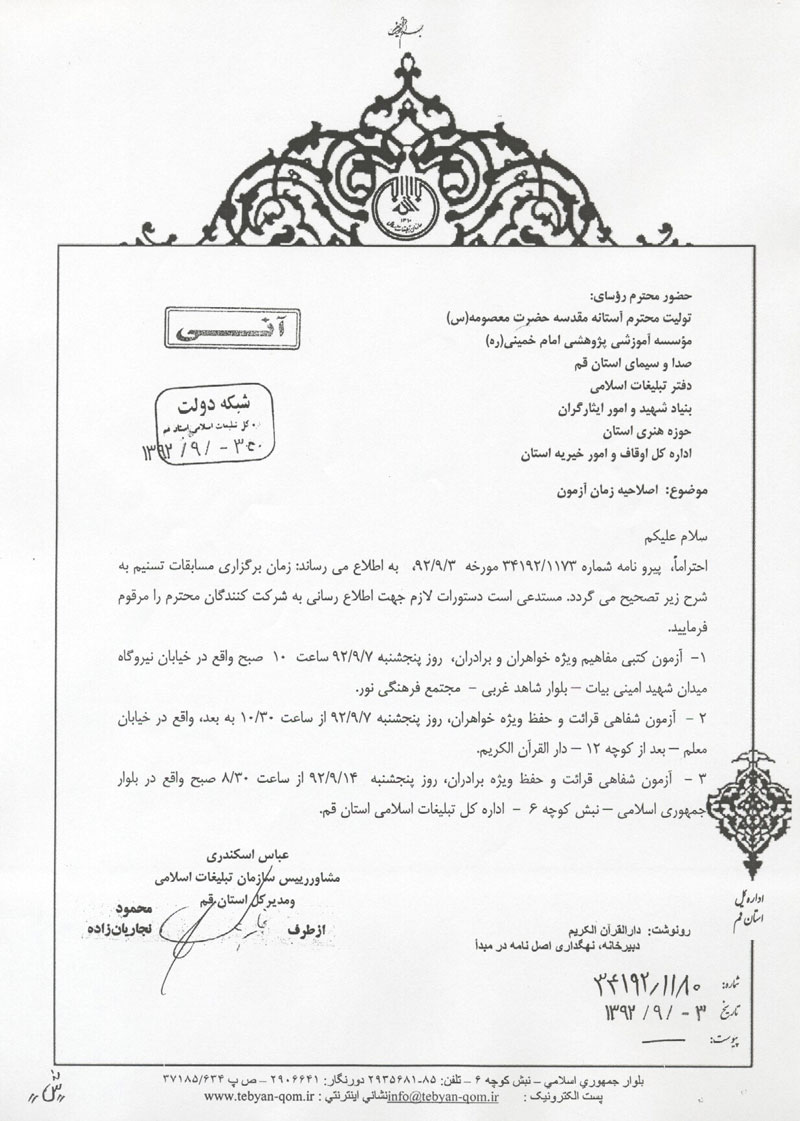 قابل توجه همکاران محترمی که برای شرکت در مسابقات قرآنی تسنیم ثبت نام نموده اند