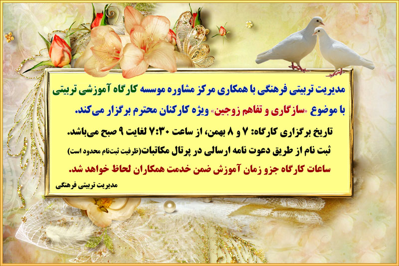 برگزاري کارگاه آموزشي تربيتي سازگاري و تفاهم زوجين