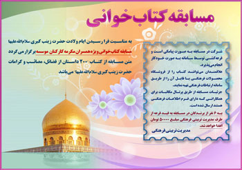 به مناسبت فرا رسيدن ايام ولادت حضرت زینب کبری سلام الله علیها مسابقه کتابخواني ويژه همسران مکرمه کارکنان موسسه برگزار ميگردد.