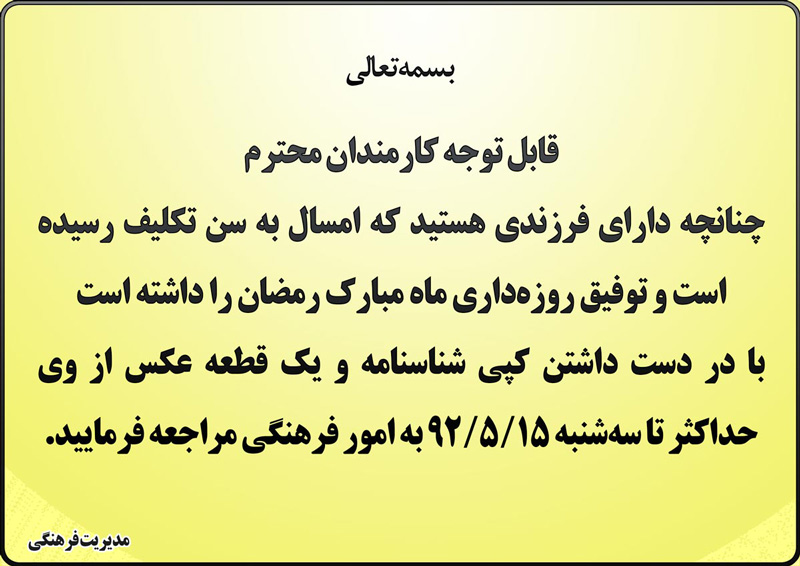 قابل توجه مديران و کارکنان محترم
