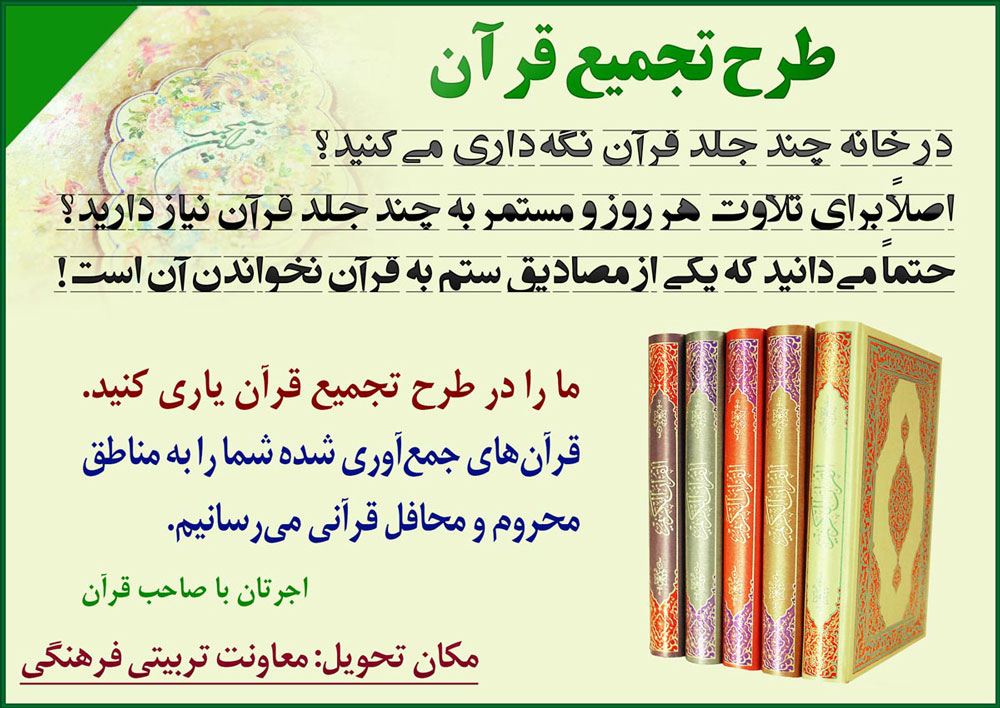 با سلام و با آرزوي سلامتي شما عزيزان به اطلاع مي رساند سازمان دارالقران الکريم اقدام به برگزاري مسابقات قرآني ويژه کارکنان و مديران و خانواده هاي ايشان با شرايط ذيل نموده است.