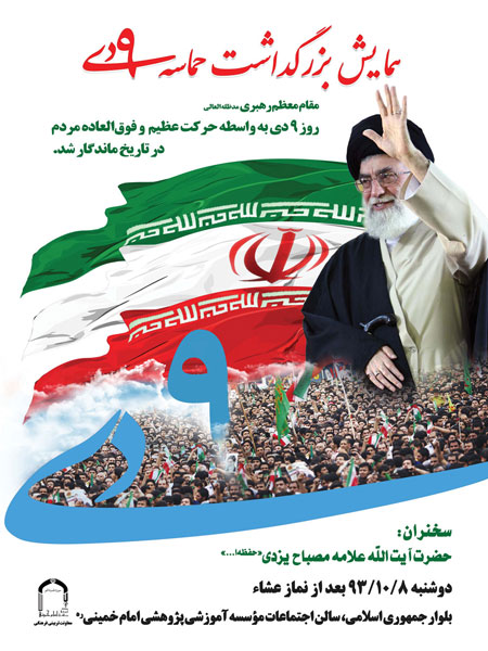 مراسم بزرگداشت ايام الله دهه فجر بهمراه تجليل از بانوي آزاده سركار خانم دكتر معصومه آباد، عضو شوراي شهر تهران و نويسنده كتاب حماسي "من زندهام" چهارشنبه 15-11-93 بعد از نماز مغرب و عشاء در سالن اجتماعات موسسه برگزار ميگردد.